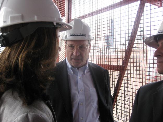 In the elevator, that's Bruce Ratner, center, with Forest City executive vice president MaryAnne Gilmartin, left.