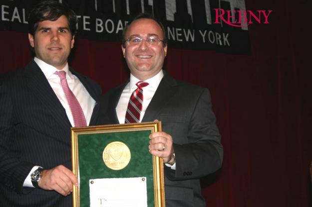 REBNY also presented during the lunch its 2009 Most Promising Salesperson of the Year Award to Clark Finney of Cushman & Wakefield, pictured here, left, with Mr. Montana.