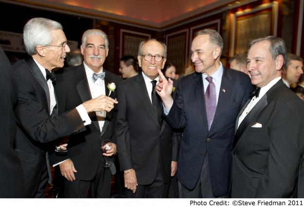 Robert Selsam of Boston Properties; Louis Coletti of the Building Trades Employers’ Association; Burt Resnick of Jack Resnick & Sons; Senator Schumer; and Peter DiCapua of Atco Properties & Management.