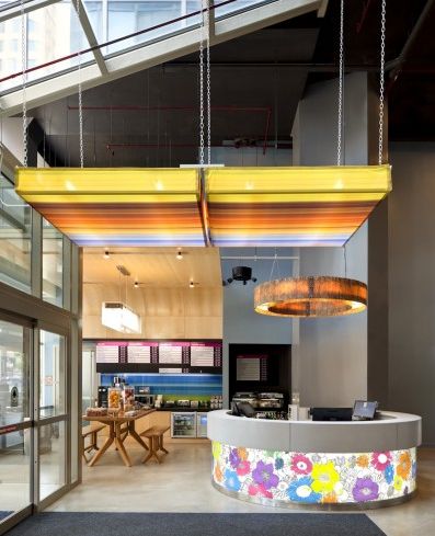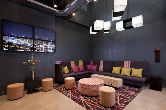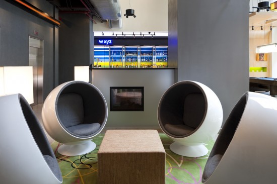 In addition to the bar, the lobby also has a “grab-and-go” food station (how college) called re:fuel, groups of bold-colored couches and chairs, and a pool table. It’s like your freshman dorm on steroids; the college you always dreamed of before reality set in and you realized that most residence halls are actually decrepit and gross. Remember the completely unrealistic college dorms depicted in the PB Teen and Pottery Barn catalogues? That’s what this hotel is like.