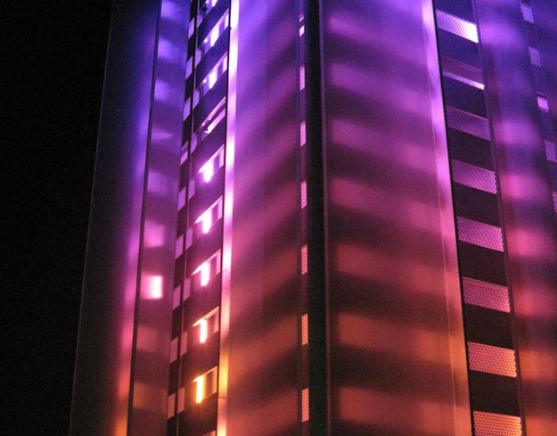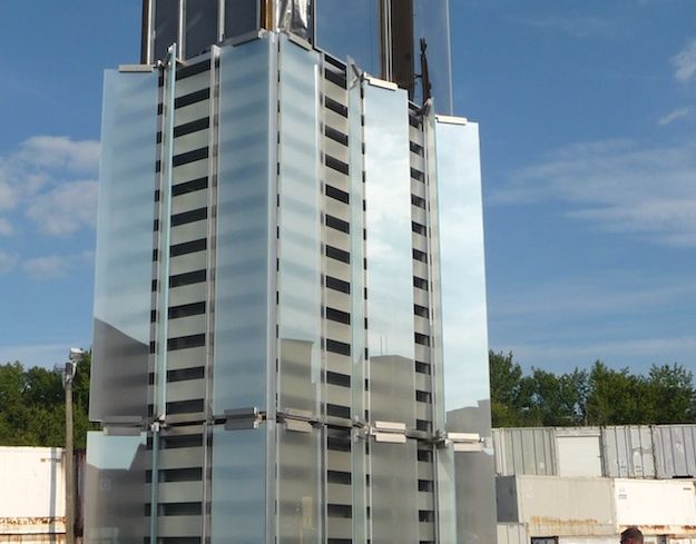 Mr. Lewis said the new base would be more reflective than refractive, relaying the surroundings, though the structure will still glow, via the sun during the day and lights at night, which are now LEDs, rather than florescent lighting as before. (It is like an upside-down Empire State Building.) The panels will also convey an Op Art-sense of movement as passersby make there way around the structure.