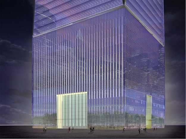One of the enduring challenges at the World Trade Center—besides who will lease up the offices—has been what the base of Tower 1 would look like. Fears persisted that the 185-foot concrete shell demanded by the N.Y.P.D. would look like exactly that, a giant bunker. The solution, arrived at by a harried team of architects in less than a month back in 2005, was waves of crenelated glass that would turn the entire structure into a giant crystal.