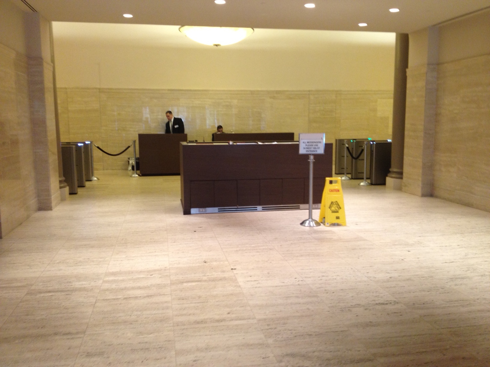 There is something cloying about the stonework in 620 Avenue of the Americas' lobby. It's hard for visitors to put their finger on it until Mr. Elder points it out: the stone's kitschy looking polished luster. One of the first renovations RXR has begun at the building is to resurface the stone to a matte finish. The work is far more economical than replacing it and is surprisingly effective. Here is a small portion of the lobby that the company has redone. Though it's a seemingly small alteration, the work dramatically enhances the attractiveness of the stone.