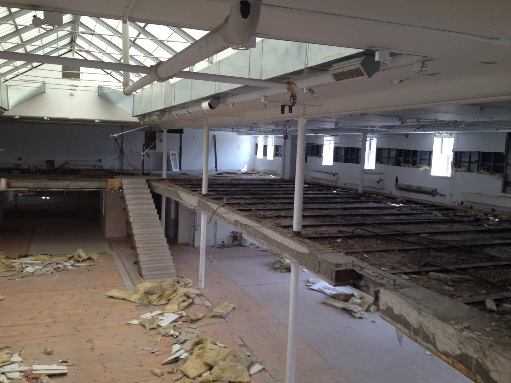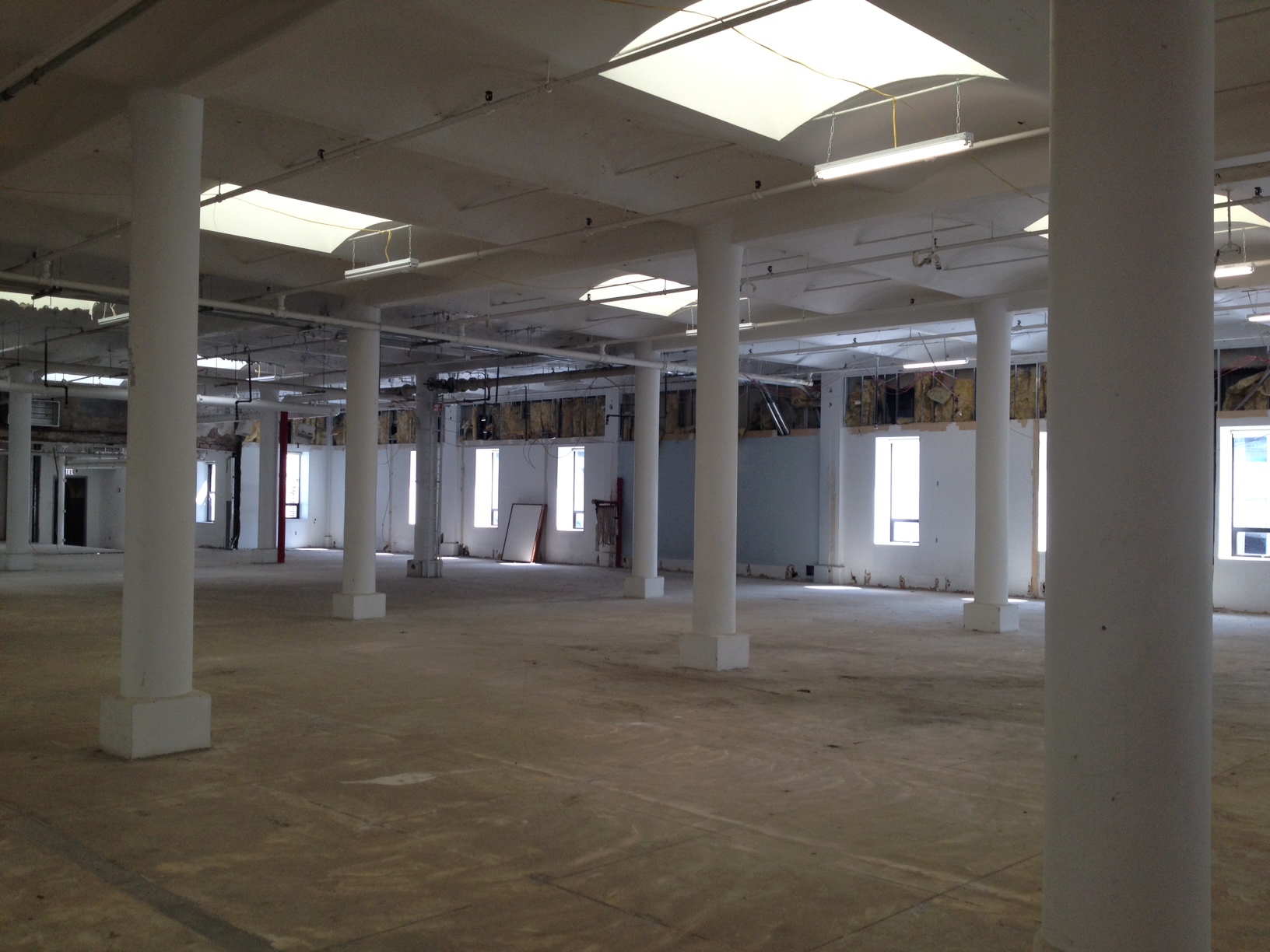 As part of the work that RXR plans for the seventh floor, the company is punching out new windows to utilize the abundant light and air that is possible in the space. Tearing down the walls, the company has discovered old windows that had been covered up. This window, which has been boarded over for years, is one of the building's originals from when the one million square foot property was constructed in the late 1800s.