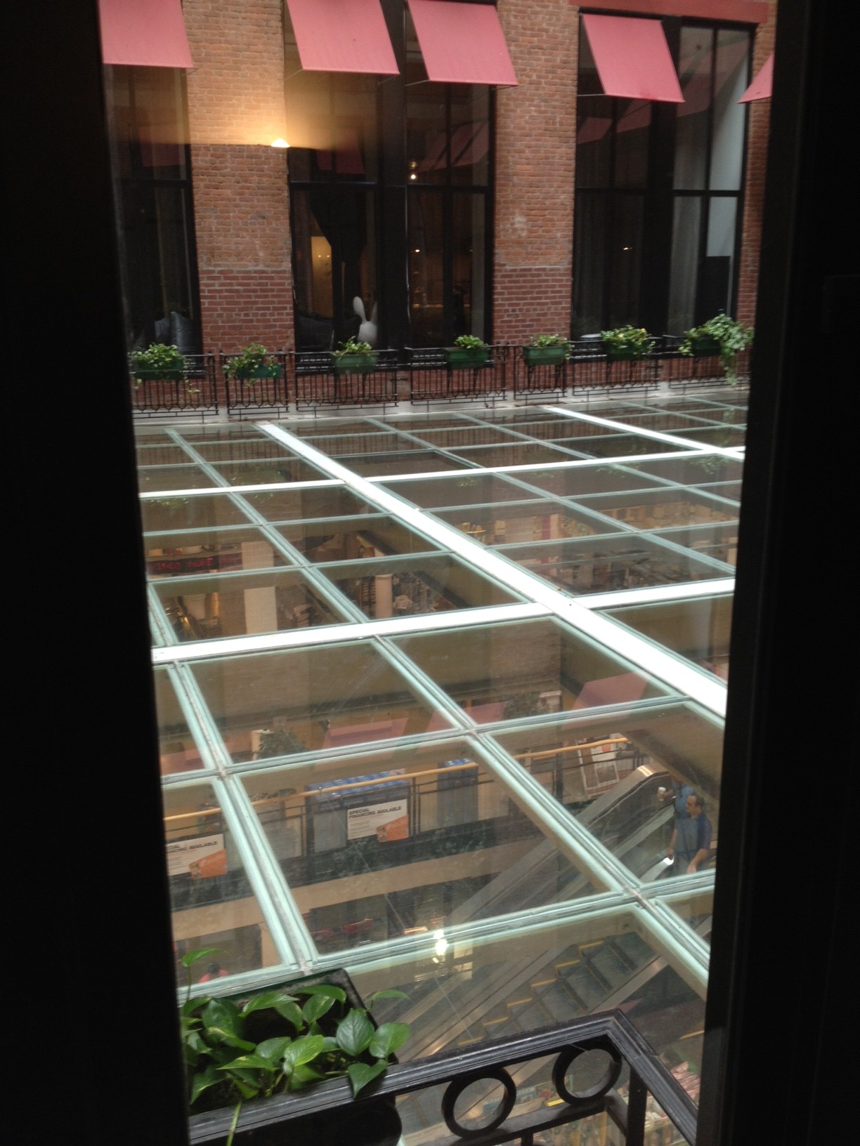 The base of a handsome internal atrium that 28-40 West 23rd Street’s owners installed in the property in the 1970s. The glass floor now looks down into The Home Depot, which has a store in the base of the building, one of only two the big box retailer has in Manhattan.