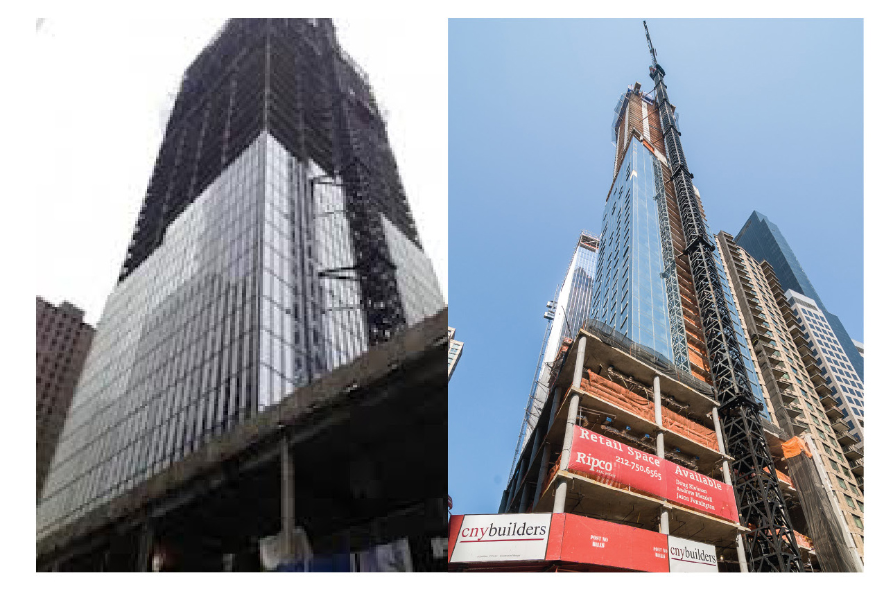 1717 Broadway, a new hotel development that has the distinction of being the tallest in the Western Hemisphere, has topped out at a lofty 750-feet, the tower’s developer Granite Broadway Development and its construction manager CNY Builders announced on Thursday. The building will house a Marriott Courtyard on the lower floors and a 261-unit extended stay hotel at the top that will also be operated by Marriott. As its height suggests, it will permit its guests impressive views of the city. But in the dog-eat-dog world of New York City real estate, so too will the building, which already is distinct for the way its thin profile dramatically contrasts with its soaring height, also stand in the way of such ogling from the upper floors of its neighbors. 1717 Broadway will obstruct to a degree the eastward views for 250 West 55th Street, a new office tower just a block west that is in the process of being developed by Boston Properties. The situation is not the first time a new tower has been built only to have its views usurped by – or be the usurper of – a rival’s. There is a ruthless math to tower development in Manhattan and the addition of one building to the skyline almost always subtracts from the views of another. In the slideshow that follows, The Commercial Observer examines similar view-blocking rivalries that have cropped up in the city over the years.