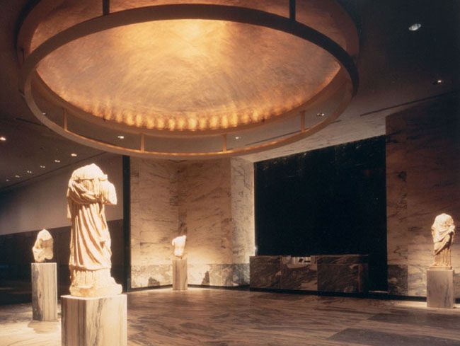 The 552,000-square-foot, classic curtain-walled structure at 125 West 55th, known as Avenue of the Americas Plaza, was developed by Macklowe Properties, completed in 1990 and sold to Boston Properties in 2008. Its facade incorporates blue-green glass within a steel and reinforced concrete structure, while its interior features classical statues.