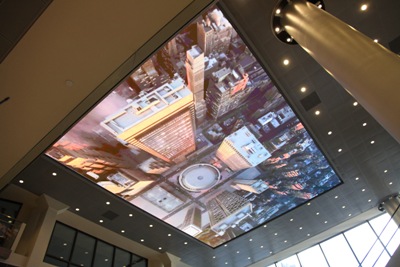 One of two 600-square-foot screens installed on the ceiling of MSG's lobby.