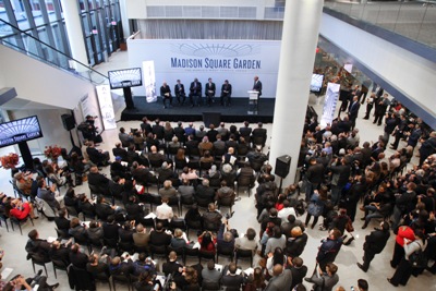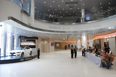 Yesterday, Madison Square Garden debuted the third and final phase of the arena’s three-year transformation process to the media. The Commercial Observer was on hand to view all of the latest additions to the venue, including the renovated Seventh Avenue entrance and the Chase Bridges. The Garden will open to fans tonight when the New York Knicks take on the Charlotte Bobcats in the team’s final preseason game. The New York Rangers will host the Montreal Canadiens on Monday night. Check out photos of the arena and Thursday’s media event after the jump.