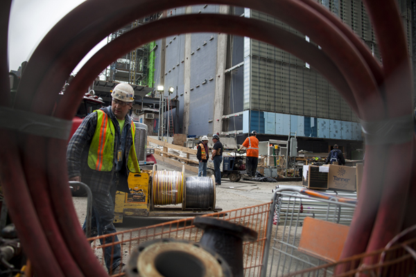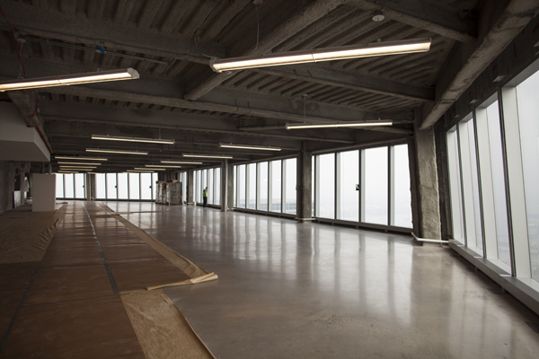 NEW YORK, NY -- OCTOBER 31, 2013: Work continues behind the scenes on the 63rd floor at 1 World Trade Center. Photographer: Michael Nagle