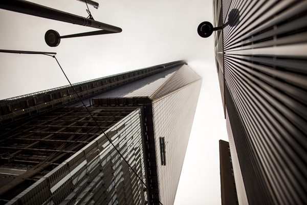 NEW YORK, NY -- OCTOBER 31, 2013: A view of 1 World Trade Center from Gate 1A at the intersection of Washington and Vesey Streets. Photographer: Michael Nagle
