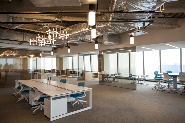 On Thursday, the Durst Organization offered a sneak peak at what office space could potentially look like at 1 World Trade Center. Boasting floor-to-ceiling windows and unobstructed views of the city, office space below the 64th floor Sky Lobby will command rent of $75 per square foot. Designed by Gensler, the marketing center at 1 WTC showcases a number of potential layouts, including traditional office and open creative space. Set to open in early 2015, 1 WTC has already secured an anchor tenant in publishing giant Conde Nast, but leasing executives still have 45 percent of the building’s space to rent. Check out photos from The Commercial Observer‘s tour of the marketing center and building site after the jump.