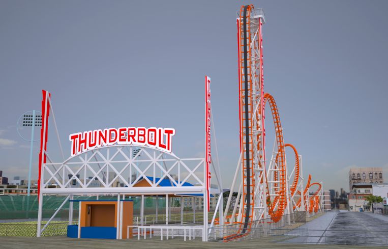 As Commercial Observer previously reported, the Thunderbolt broke ground on March 10. Construction commenced the following day. The roller coaster is being built on city-owned property adjacent to the boardwalk in Luna Park, and it will be the first roller coaster in the area since 1910 to send riders upside-down in a vertical loop.