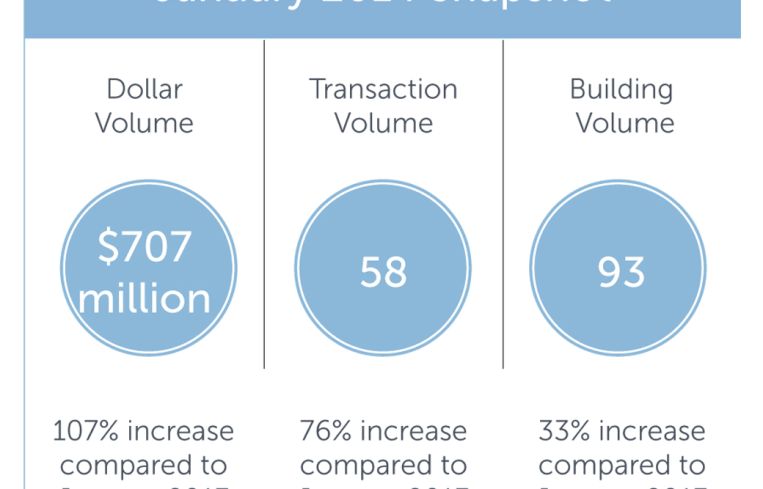 This January, there were 58 such deals involving 93 buildings and totaling $707.302 million in gross consideration, Ariel Property Advisors found in its monthly review of multifamily deals that occur at a minimum sales price of $1 million, with a minimum gross area of 5,000 square feet and with a minimum of 10 units.