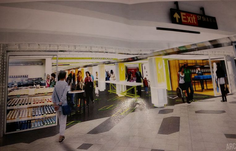 The 14,750-square-foot Architecture Outfit-designed transit marketplace spans the northeast corner of 58th Street and Eighth Avenue below the Time Warner Center to the southeast corner of 57th Street and Eighth Avenue below the Hearst Tower. Asking rents range from $300 to $400 per square foot for leases ranging from five to 10 years. Occupancy is targeted for mid-2015.