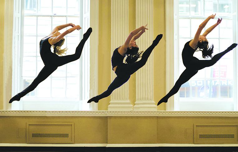 Also harking back to the bank days, the first-floor dance studio has on its walls two of the bank’s original murals. And, the entrance to the studio, below the exit sign, is the location of the former bank entrance.