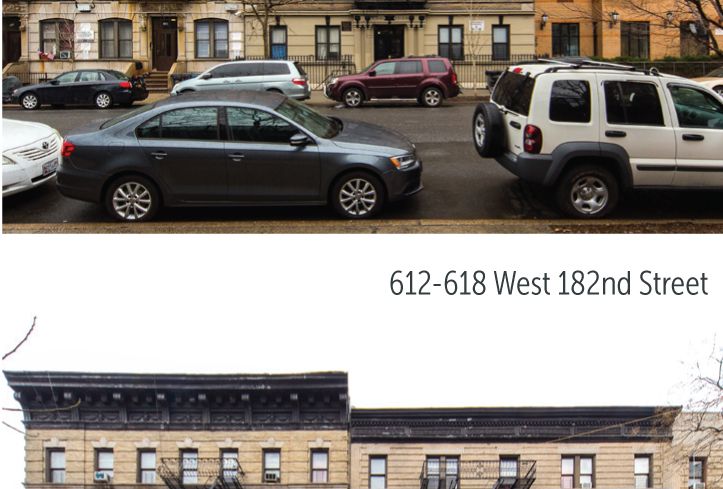 The three walk-up buildings contain 45,543 square feet and a total of 60 units, according to LoopNet. There are 31 residential units, five of which are free market, at the six-story building on West 163rd Street. There are 30 apartments, five of which are free market, at the West 182nd Street buildings.