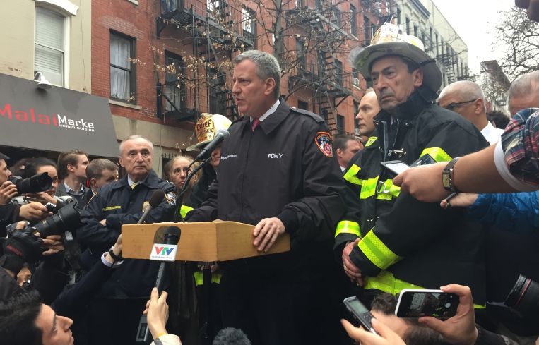 At 3:17 p.m., private contractors were conducting plumbing and gas work inside 121 Second Avenue between East Seventh Street and St. Mark’s Place, which caused an explosion that impacted 119, 121, 123 and 125 Second Avenue. The buildings at 121, 123 and 125 Second Avenue collapsed; fire fighters are working on battling a fire at 119 Second Avenue, and that building is at risk of collapsing, officials said at a press conference this afternoon.