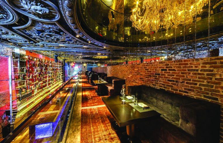 “If I had to describe this $8 million design in a few words, I would say that the most striking features are the inter-penetrative double-mezzanine restaurant and lounge, a versatile environment of plush luxury and awesome finishes such as wide-planks ceruse oak floors reminiscent of French castles, industrial nailed steel beams, three-story-high chandelier on aged mirrors,” said Mr. Madie. “The wine cellar is a connoisseur’s dream and the kitchen is an OMG paradise to any cordon-bleu French chef.”