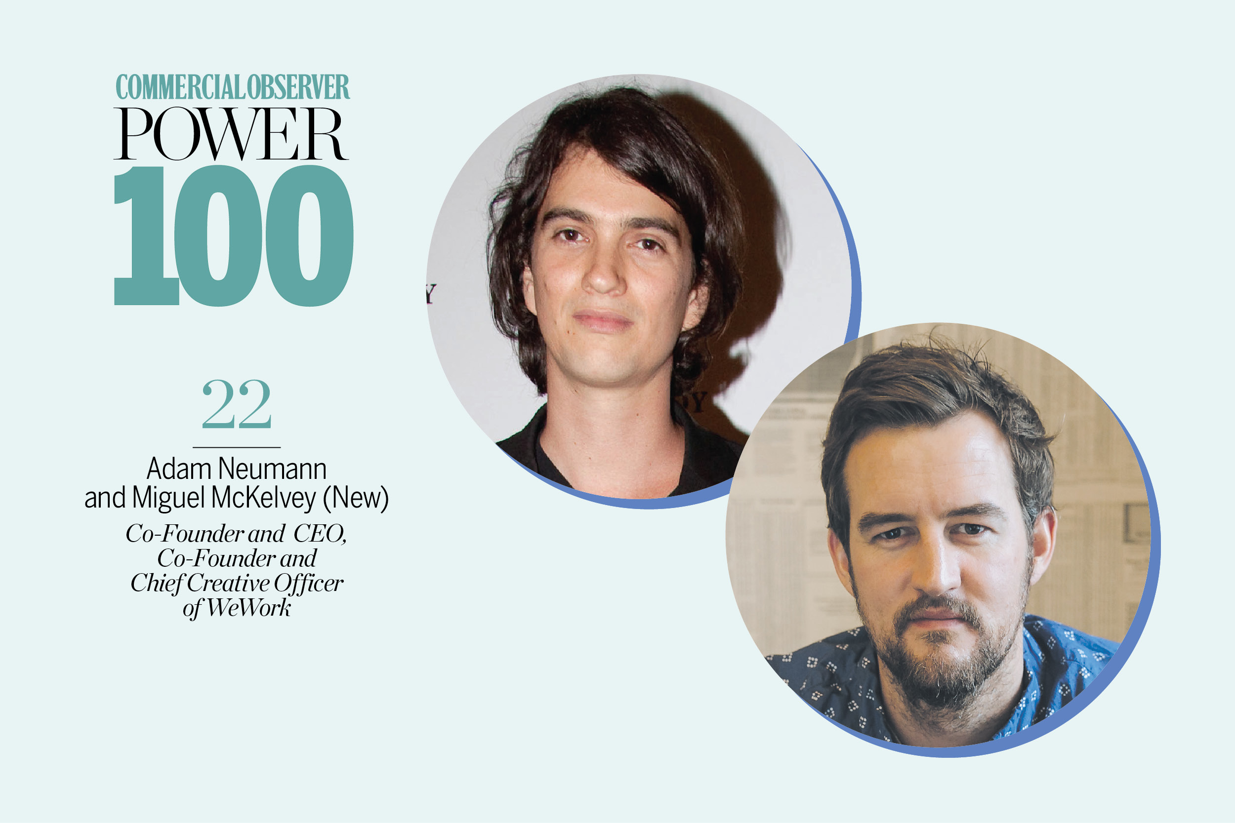Likewise, the No. 22 spot—a spot high enough any respectable real estate billionaire should be comfy with—we gave to Adam Neumann and Miguel McKelvey, two newbies who had never been on the Power 100 before. But with WeWork (which was valued last year at $5 billion) a profound new force has emerged in commercial real estate, and we are obliged to pay tribute.