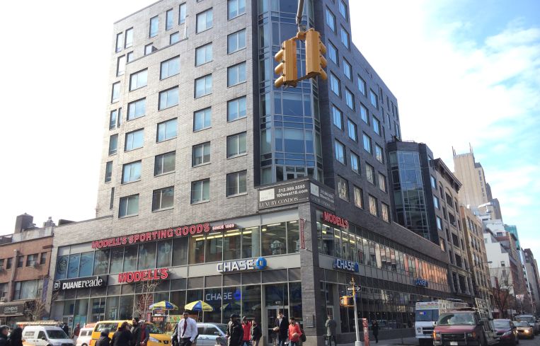 The 30,000-square-foot retail component is fully leased to Chase Bank, Duane Reade and Modell’s Sporting Goods. The 10-story building also houses 41 luxury residences that were not a part of the refinancing.
