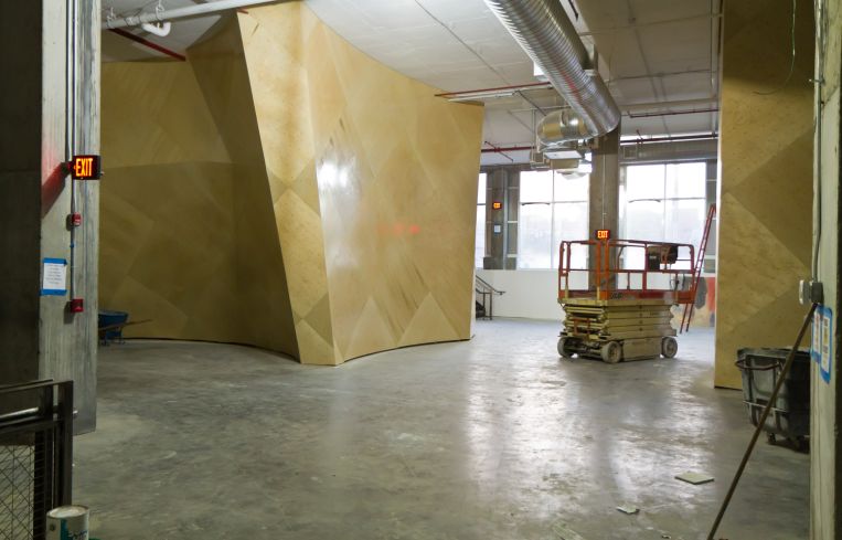 But those designs aren’t just limited to walls that curve every which way for maximum climbing abilities. Brooklyn Boulders sites also doubles as coworking space able to house 30 to 50 workers with workstations including shared tables and standing desks.