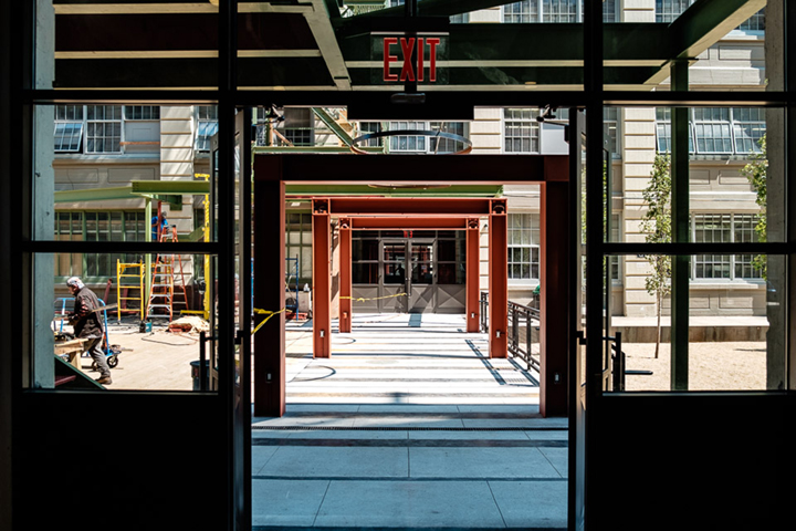 “When the new partnership formed in 2013, Industry City faced $300 million of deferred maintenance due to a lack of investment over the last 50 years including the need to modernize 18,000 windows, 144 elevators and an antiquated electrical system,” Mr. Kimball said via email after CO’s tour. “Over the last two years, $100 million has been committed toward these infrastructure improvements, as well as toward key place-making initiatives such as raised sidewalks, innovation alley and new courtyards. Over a 10-year period, including new buildings and tenant investment, we expect that a total of $1 billion of investment will be made in Industry City resulting in the creation of 20,000 jobs.”
