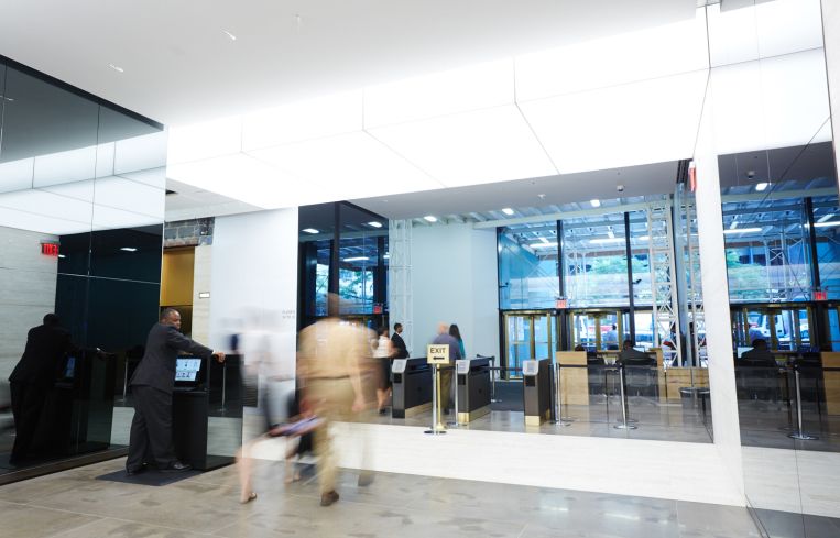 The next step for the north end of the lobby is to push out the front glass, Mr. Fisher said. While the north side of the lobby is completed, crews are still hammering away at the south end. They’re expected to finish by October, and while the landlord couldn’t confirm an exact cost, Mr. Fisher said it would likely be more than $20 million.