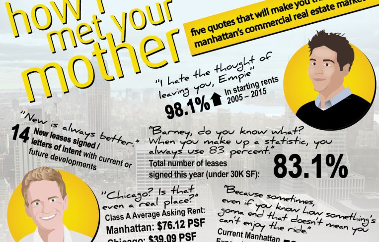On September 19, 2005, a television sitcom, based primarily in New York City, opened with the line, “Kids, I’m gonna tell you an incredible story—the story of how I met your mother.” And after nine full seasons, How I Met Your Mother gave us some quotes that are LEGEN—wait for it—DARY! In honor of the 10-year anniversary of the pilot episode, here are some quotes from the show that made me think of the Manhattan commercial real estate market. So, as Barney Stinson would say, “Suit up!” and enjoy the stats.