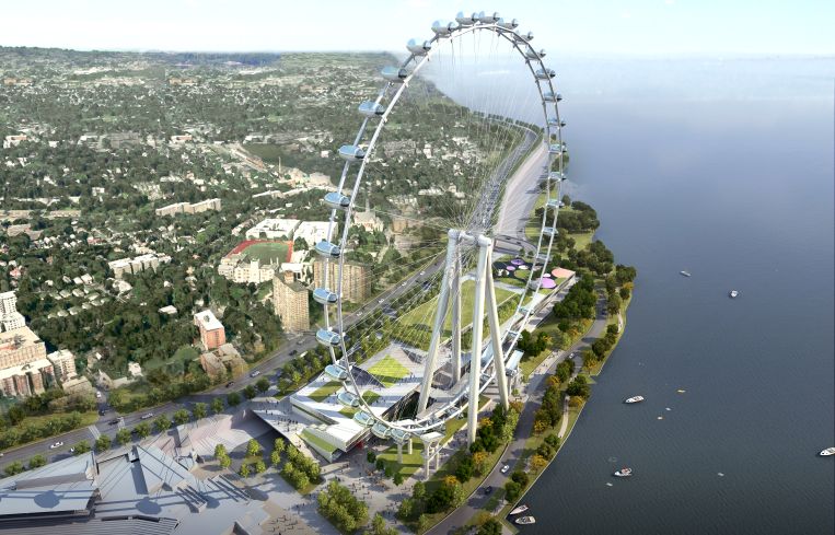 The wheel will be almost 90 feet taller than the Singapore Flyer in Asia. The project abuts the Staten Island Ferry terminal in the St. George section of the borough.