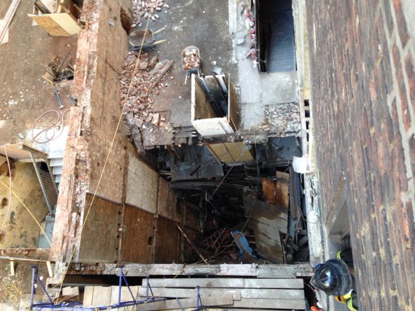 The workers were on the the first floor of the more than 80-year-old structure when it started to collapse into a “V” shape, according to DNAinfo. Responders were able to get to the dead worker immediately, but the injured man was trapped in the basement for three and a half hours.