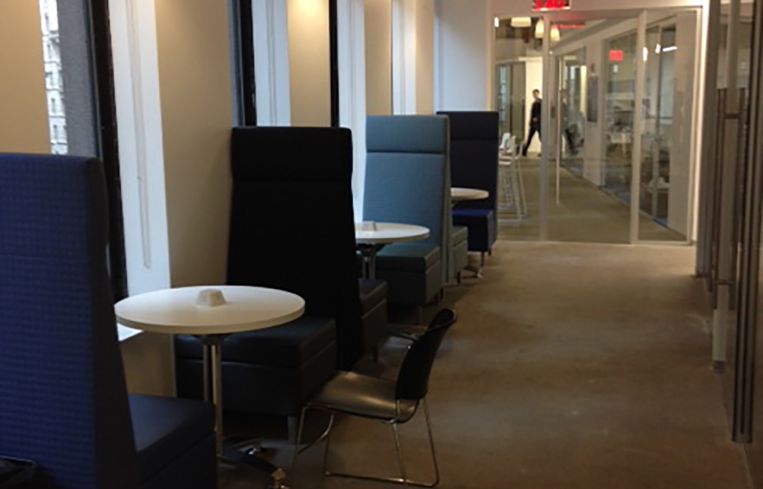 Take the new offices for Year Up, a nonprofit that does job training for low-income young adults (think 18 to 25 years old), which has consolidated its New York offices to 38,407 square feet at 85 Broad Street. The office was designed to give these young adults the experience of a corporate office to learn the skills of one day working in something similar. The 32-story building between Pearl and South William Streets also happens to be the former Goldman Sachs headquarters.
