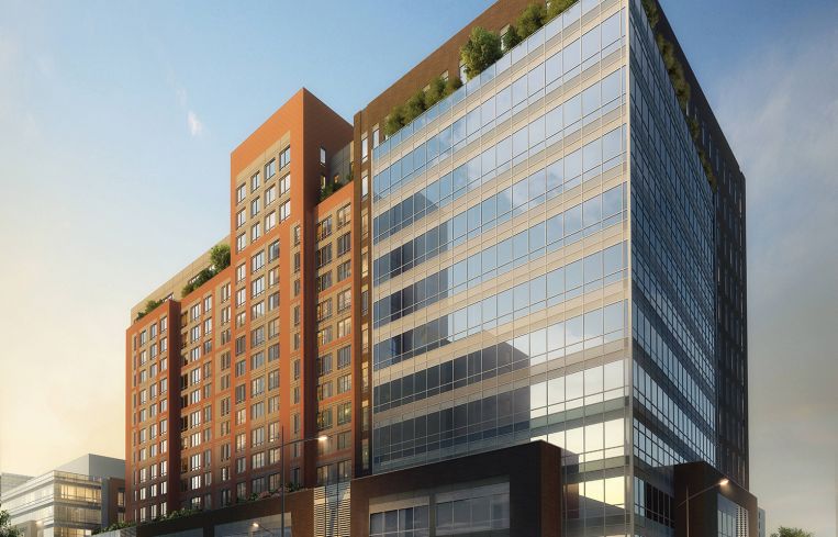 Parking won’t be an issue for employees in the building, either. Flushing Commons is replacing a 1,100-vehicle municipal surface parking lot, and when the entire project is completed, there will be 1,600 underground municipal parking spaces.