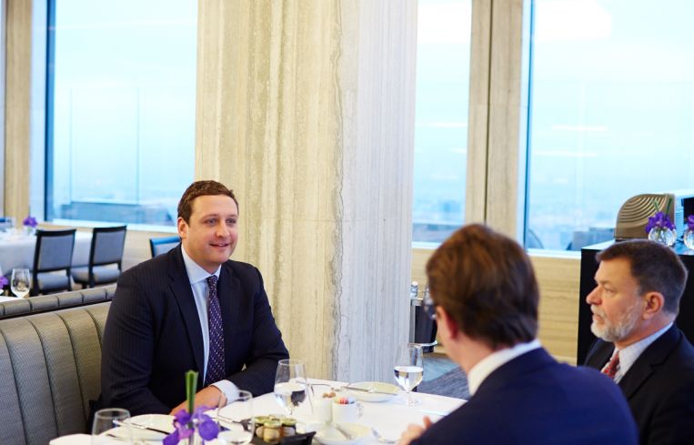 The incredible view of New York City’s skyline from the Rainbow Room at 30 Rockefeller Center makes for a good start to anyone’s morning—especially a commercial real estate broker’s. With an order of eggs benedict and the company of two colleagues, Peter Rotchford and Bruce Whipple (both directors in Avison Young’s capital markets team), Mr. Piasecki plans for the day. The three discuss strategies for deals they are working on.