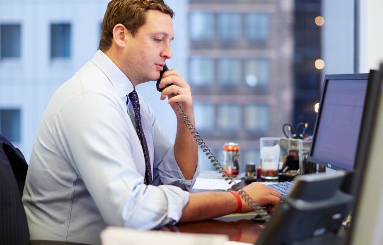 The broker immediately starts making and taking phone calls, responding to emails and looking over deals for clients.