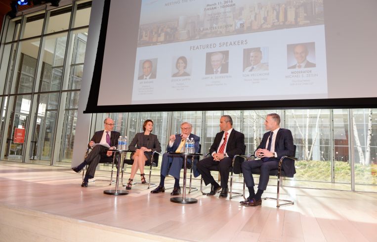 For more than an hour, the panel discussed these needs and fielded questions from the audience on what new office product could look like by 2025. Moderated by construction attorney Michael S. Zetlin of Zetlin & DeChiara, the group consisted of Larry Silverstein, the chairman of Silverstein Properties; Jessica Lappin, the president of the Alliance for Downtown New York; Jay Badame, the president of Tishman Construction; and Tom Vecchione, a principal and the design director of Gensler.