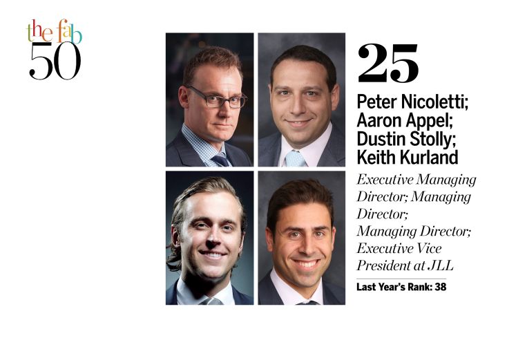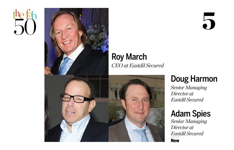 It also explains why Blackstone’s Michael Nash and Stephen Plavin—along with Jonathan Pollack, who recently hopped aboard Blackstone from Deutsche Bank—took No. 2. Finally, it’s the reason why the folks at Eastdil Secured—Roy March, Doug Harmon and Adam Spies—landed a coveted No. 5 spot.