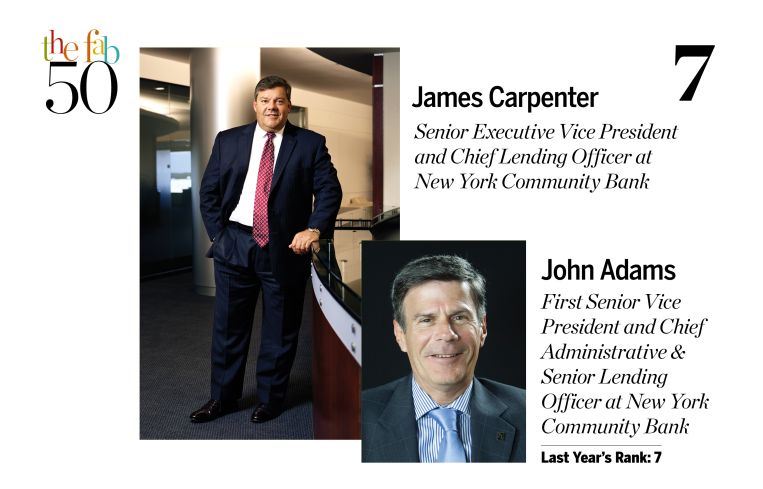 Mr. Carpenter has been a senior executive vice president and chief lending officer at NYCB since 2006, and Mr. Adams has been with the bank for 32 years, leading a team that has grown to 85.