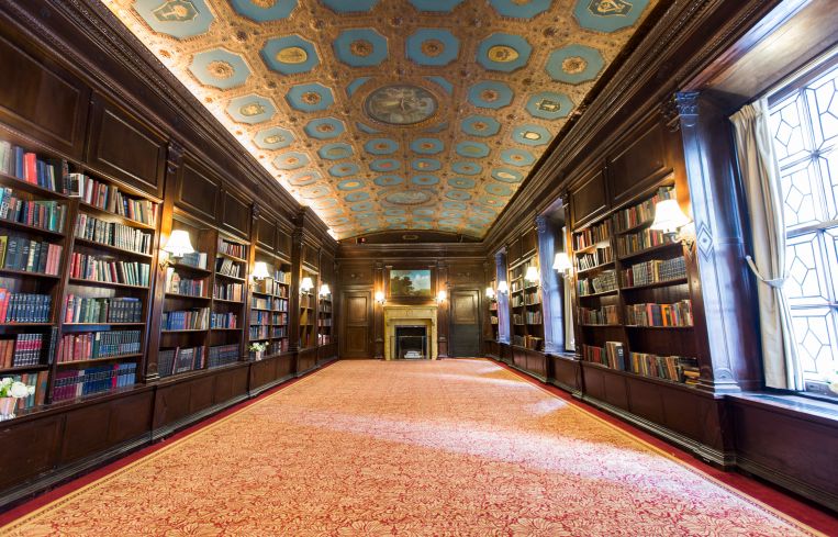 The space includes the two-story Renaissance-style Gold Room, completed almost entirely in gold, which originally was a music room; the Madison Room, which is an 1891 triple drawing room; and the drawing room and library on the third floor with their carved-wood walnut, Italian marble fireplaces, book-lined walls and original gilt chandeliers.