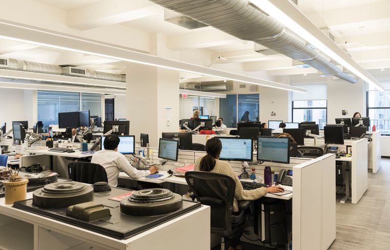 In total the office houses 75 employees, about triple its workforce than when it was in the Chrysler Building where UNOPS had 50,000 square feet. Although the new office is smaller, it feels more loft-like as older layouts plans, such as having printers near every desk, were dispatched. Since paper is less of a necessity and work is done through cloud computing on iPads, iPhones and laptops, there is only one printer now. The open-space layout also allows for better interaction in the office.