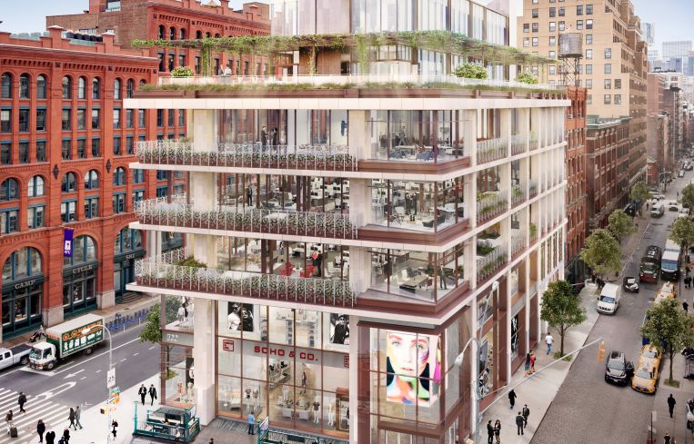 Related and Manhattan-based LargaVista are transforming the property—which spans an entire block between Crosby, Lafayette, East Houston and Jersey Streets—into an 80,000-square-foot boutique office and retail building. The property will include 50,000 square feet of office space on the top four floors and 30,000 square feet of flagship retail space. The seven-story development is the first new Class A building in the Soho district in more than 100 years, according to a release by Related.