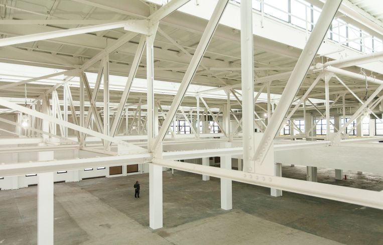 The interior of the 170,000-square-foot building looked like the set for an old horror flick with yellow tiled walls, large columns of the same color and dark, unpolished floors. But developers Savanna and Hornig Capital Partners, which purchased the property for $33.7 million in January 2015, have pumped an additional $30 million into a complete renovation of the building between Noll and Melrose Streets.