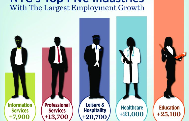With all the jobs added in New York City over the past year, it’s time for a countdown of the top five industries that had the most job creation.