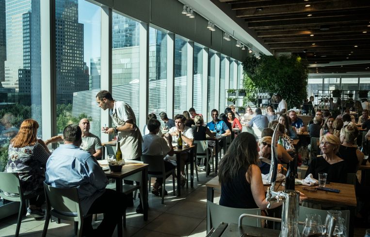 Apparently not. Since it’s been open, it’s attracted throngs of New Yorkers and out-of-towners, all eager to sit down with a board of salumi and a glass of wine, overlooking the World Trade Center memorial.