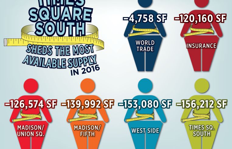 In 2016, only six of the 19 Manhattan office submarkets actually shed available supply, while unfortunately, the other 13 added to their waistlines. So, let’s examine the six submarkets that stuck to their resolutions in 2016.