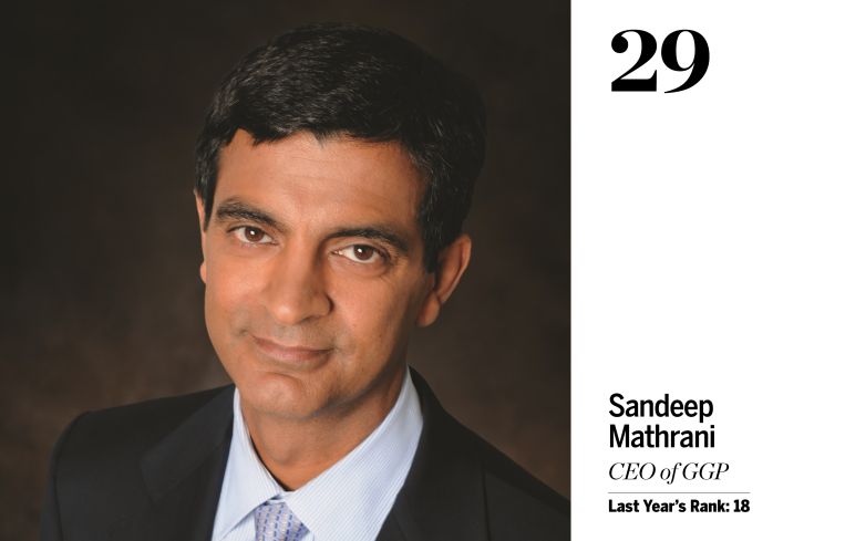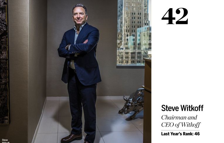 Of course, every rule has its exception. There were certainly a few bold buys, and deals continue to be made. RXR Realty spent $1.65 billion acquiring 1285 Avenue of the Americas from AXA Financial (RXR’s Scott Rechler is No. 4 on our list). And as global lines blur, several international real estate players rose in our estimation, including newbies like Masayoshi Son—the Japanese billionaire founder of SoftBank (and chairman of Sprint) who waded deep into real estate waters with his $3.3 billion acquisition of Fortress Investment Group (landing a respectable No. 30). And while Anbang’s multibillion-dollar redevelopment deal with Kushner Companies went south, there is little question that the Chinese insurer that owns the Waldorf-Astoria is a serious player in New York and U.S. real estate—after all, Anbang did pick up Strategic Hotels and Resorts from Blackstone for $6.5 billion (Anbang’s Wu Xiahui is No. 38).