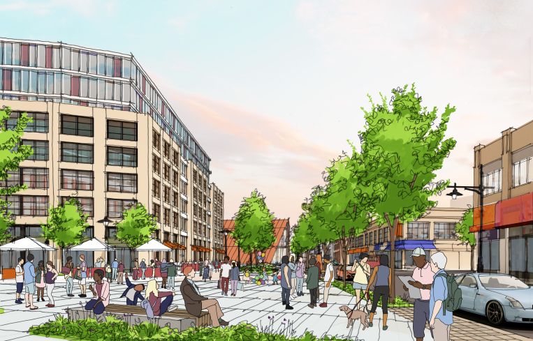 The zoning change will kickstart a $288 million, multi-city agency development plan, which will consist of the construction of more than 3,000 residences, 250,000 square feet of commercial space, 86,000 square feet of community facility use and 30,000 square feet of open public space.