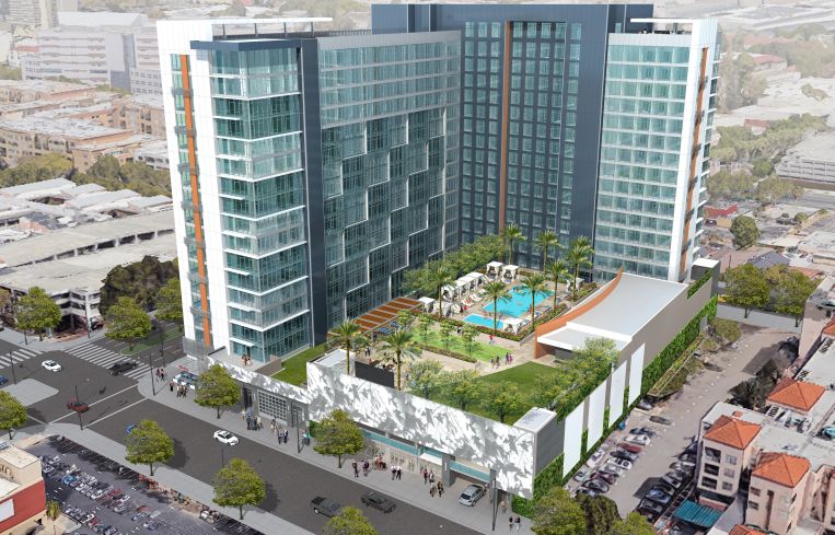 The Class-A, L-shaped property at 90 East San Carlos Street will sit on a 1.45-acre site located one block from the main entrance to San Jose State University. In addition to housing 1,039 students across 260 furnished apartments in its top 17 floors, the building will include 14,750 square feet of retail space, a four-level parking garage, an amenity deck and a pool.