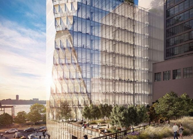 Construction on the Studio Gang Architects-designed tower, notable for its gem-like glass facade, began earlier this year and is slated for completion in early 2019. The building will feature a 10,000-square-foot shared outdoor roof deck and 8,000 square feet of outdoor space on the second floor adjacent to the High Line, as well as private outdoor terraces on eight of the nine office floors.