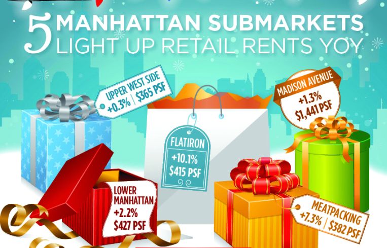 It’s the most wonderful time of the year…for retail. With holiday shopping in full swing and this year’s holiday sales expected to increase 4.2 percent compared with 2016, there is a lot to be positive about at New York City’s annual International Council of Shopping (ICSC) event. Although availability rates are up year-over-year in nine of 11 retail statistical submarkets tracked by Cushman & Wakefield, asking rent depreciation slowed. Average ground-floor asking rents dipped just 3.3 percent to $1,115 per square foot based on the 11 submarkets, which suggests asking rents are beginning to stabilize after posting an 8.5 percent decrease one year prior. Of the 11 submarkets, five recorded an increase in asking rents compared to one year ago.